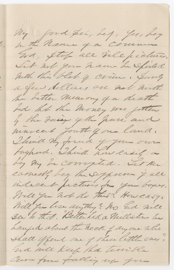 Letter from John T. Wightman to Richard Harvey Wright, January 3, 1888: Electronic Edition. Author: Wightman, John T. Wright, Richard Harvey, 1851-1929 Funder: Funding by the Institute of Museum of Library Services (IMLS) and the federal Library Services and Technology Act (LSTA), with support provided through North Carolina ECHO. Transcription Information: Text transcribed by: Barbara Post Images scanned by: Digital Production Center Text encoded by: Katherine M. Wisser Transcription Edition: Edition: First edition, Date: 2006 Publication Information: Publisher: Duke University Libraries Date: 2006 Availability: ©This work is the property of the Duke University Libraries. It may be used freely by individuals for research, teaching, and personal use as long as this statement of availability is included in the text. Source Information: Title: Letter from John T. Wightman to Richard Harvey Wright, January 3, 1888 Author: John T. Wightman Date: 18880103 Note: A Baltimore clergyman, John T. Wightman expresses his disapproval about the photographs packaged in cigarette boxes and the evil the cigarette cards are doing to youth. Wightman begs Richard Harvey wright to end the packaging of "vile pictures" in Lone Jack cigarettes. P: Richard Harvey Wright Papers, 1870-1952, David M. Rubenstein Rare Book & Manuscript Library, Duke University. Library of Congress Subject Headings: Class: Cigarette industry -- North Carolina -- 19th century Class: Cigarette cards -- North Carolina -- Durham -- 19th century Class: Lone Jack Cigarette Company (Lynchburg, Va.) Class: Tobacco industry -- North Carolina -- Durham -- 19th century Class: Ethics Class: Correspondence Class: Durham (N.C.) -- History Class: Wightman, John T. Class: Wright, Richard Harvey, 1851-1929 Class: Durham (N.C.) Class: Baltimore (Md.) Class: Lynchburg (Va.)